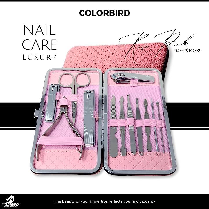このセットには、爪切り、斜め爪切り、眉毛はさみ、爪やすり、ピンセット、耳かき、ダブルエンドピッカー、爪やすり、キューティクルプッシャー&ナイフ、キューティクルトリマー、ニキビ針が含まれています。