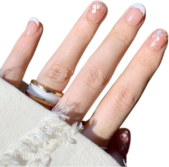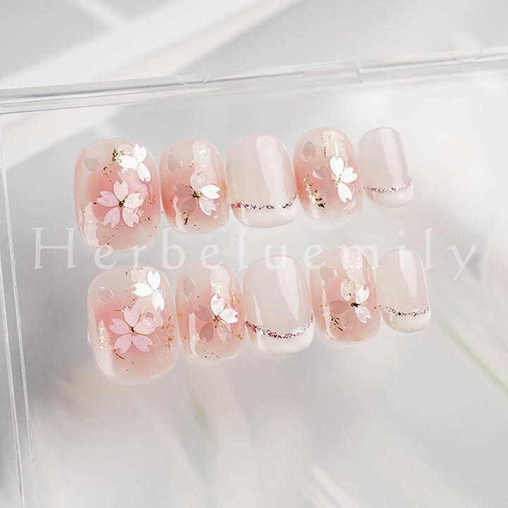 「ピンクの桜ネイル」桜のデザインと根元フレンチネイルの可愛いネイルチップ。