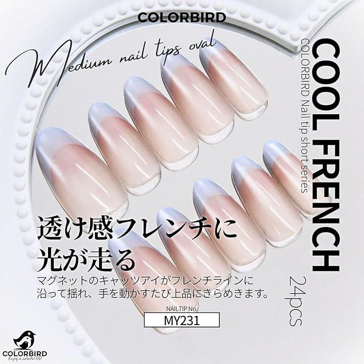 肌なじみの良い透け感ベースに、上品な輝きを放つフレンチマグネットデザインを施したミディアムオーバル型ネイルチップ。