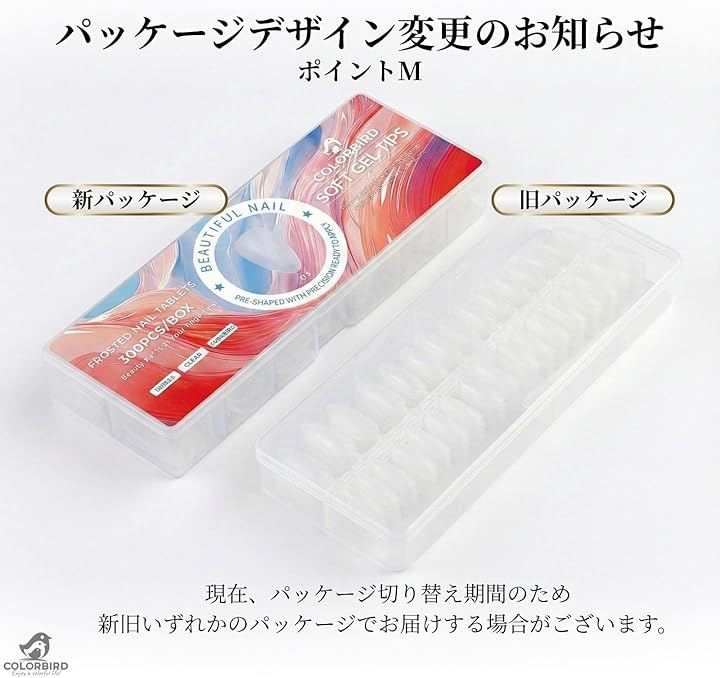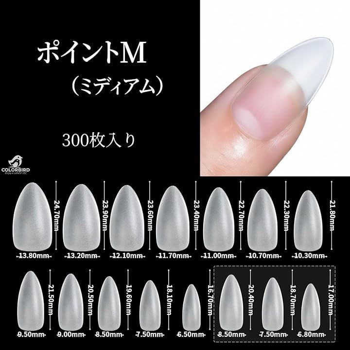 COLORBIRD 超薄型 ネイルチップ クリア サンディング済み 300ピースセット。