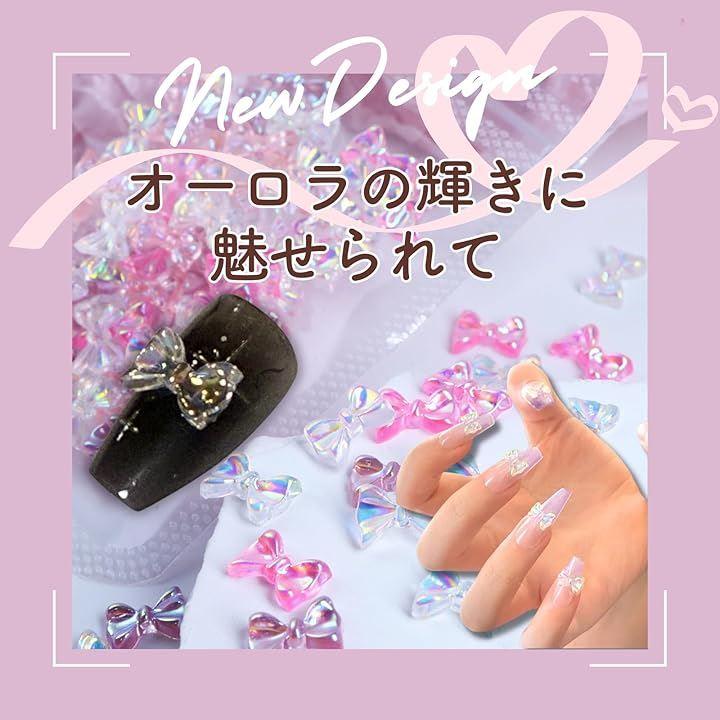 このネイルパーツセットは、オーロラの輝きを放つリボン型3Dデザインが特徴で、指先に華やかさと個性をプラスします。