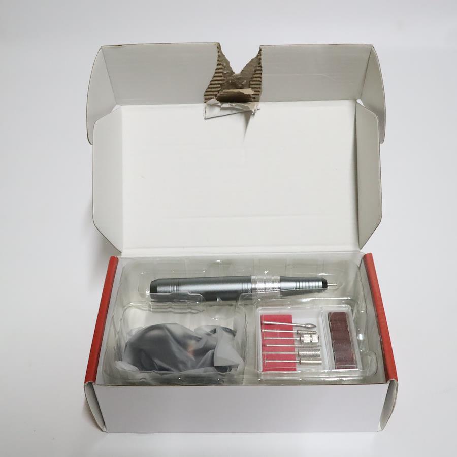 【詳細】■ 商品名・モデル:電動ネイルマシン(MOREVEE)■ ブランド:MOREVEE■ カラー:グレー系■ 状態:- 傷・汚れ:コードにヨレあり/外箱にダメージあり- 使用感:中古品のため、使用回数は不明です。本体は比較的きれいな状態です。- 動作確認:動作確認済み■ 付属品:USBケーブル、ビット6種、サンディングバンド5個、外箱■ セット内容:写真のものがすべてです