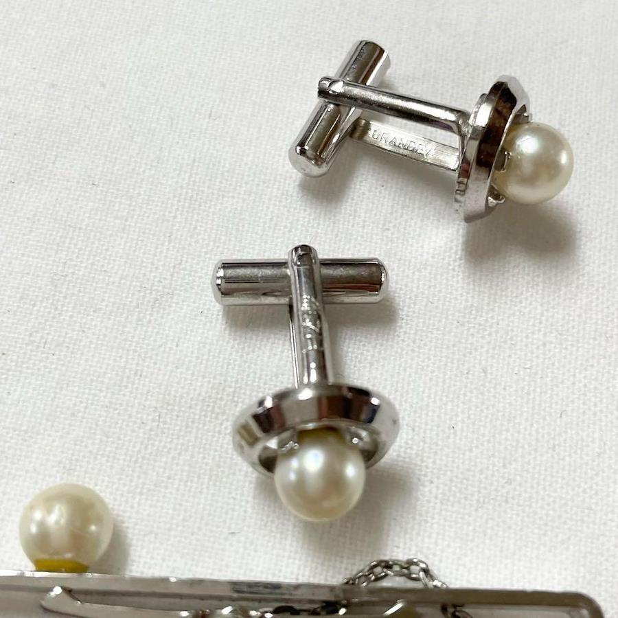 ネクタイピン カフリンクス カフス セット 真珠 パール メンズ スーツ 日本製