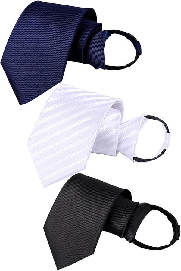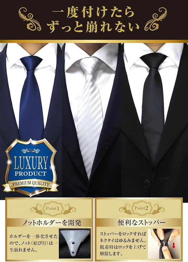 ワンタッチで装着可能なファスナー式のネクタイです。
