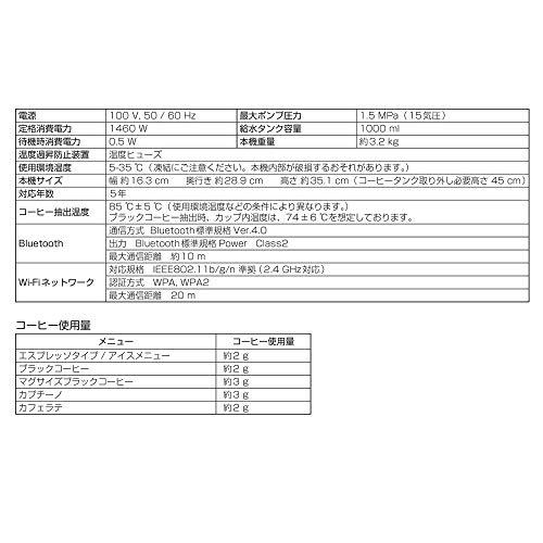 ・本体サイズ:幅16.3㎝×高さ35.1㎝×奥行き28.9㎝ スリムなボディでキッチンにフィット・給水タンク容量:1000ml(5~7杯分)