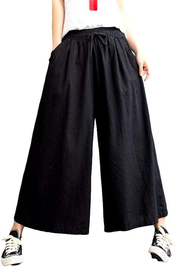 ・さらっとした綿麻素材のロング丈ワイドパンツ。
