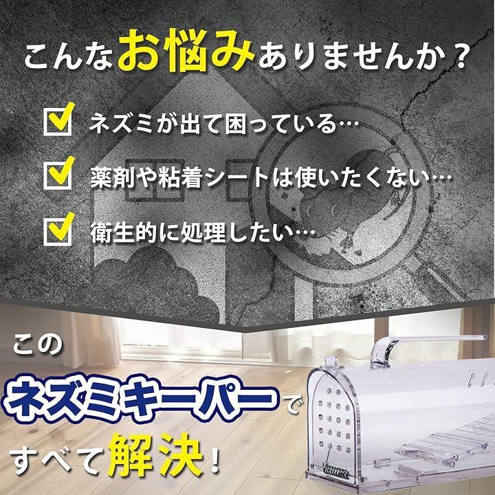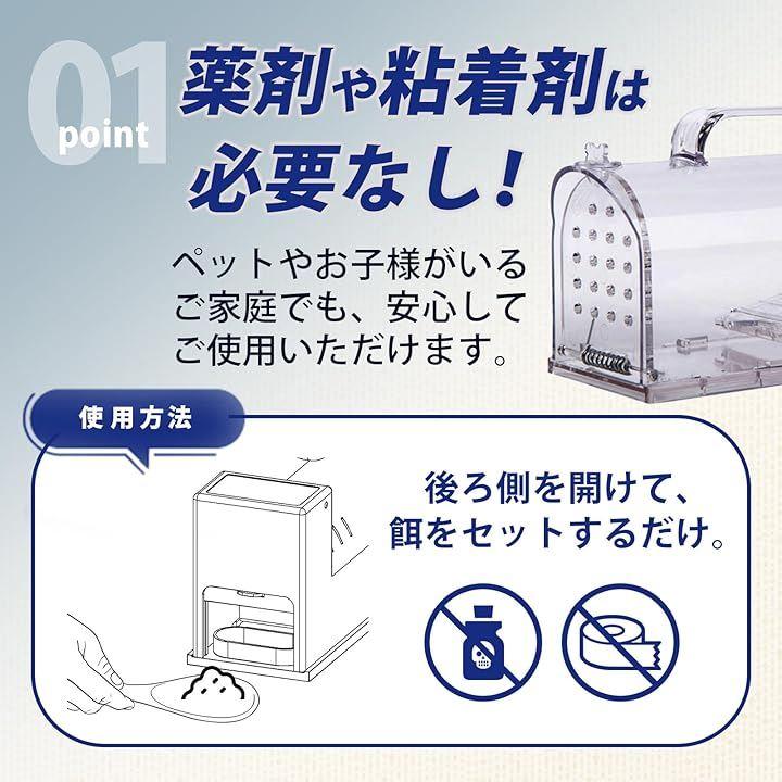 「安全・経済的に使えるネズミ捕獲」ペットや子供がいるため安全性を重視したい方、薬剤を使わずにネズミ駆除を行いたい方、繰り返し使える捕獲器具を探している方に特におすすめです。