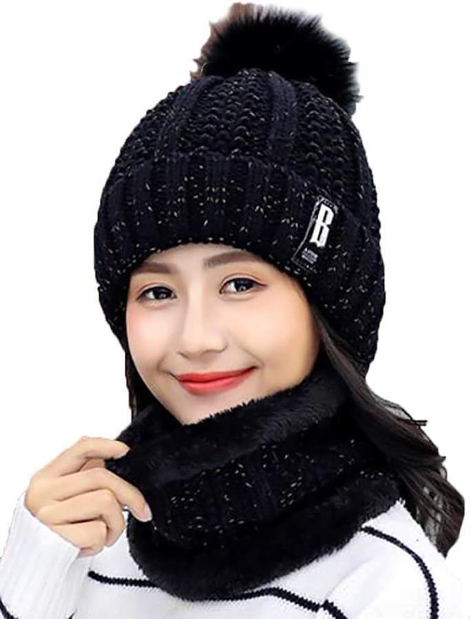 ふんわり程よいボリュームで小顔効果も。オシャレなデザインと機能性の両方を兼ね備えたニット帽とネックウォーマーのセットです。