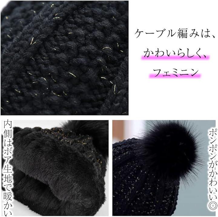 ニット帽とネックウォーマーのセットは、ざっくりと編み込まれたケーブル編みで、かわいらしく、フェミニンな女性らしい雰囲気を引き出してくれるデザインとなっております。