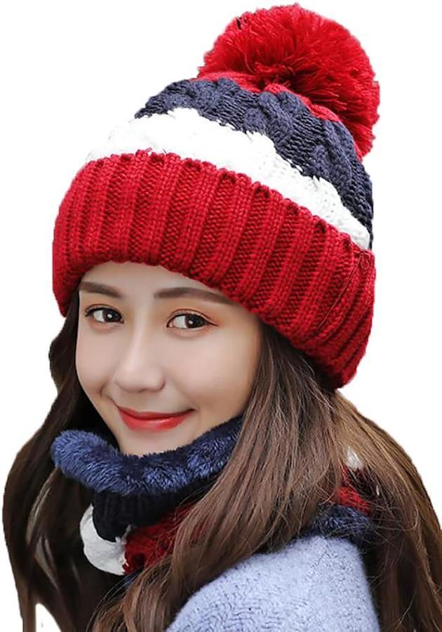 「かわいいニット帽&ネックウォーマーセット」大きめのポンポンがカワイイあったかニット帽とネックウォーマーの2点セットです。
