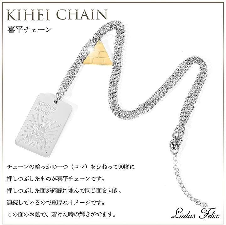 チェーンの輪っかの一つ(コマ)をひねって90度に押しつぶしたものが喜平チェーンです。