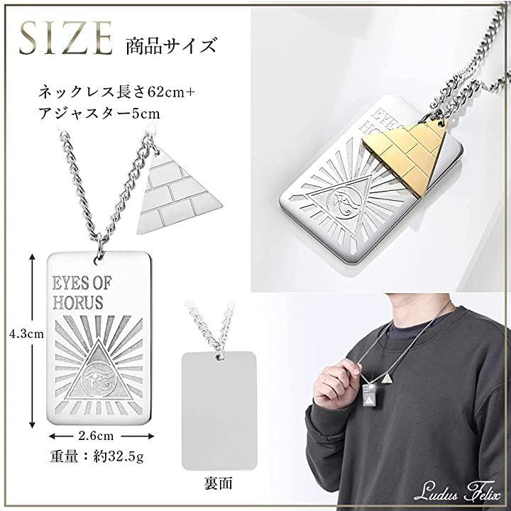・「 サイズ 」ネックレス長さ 62+アジャスター5cm・トップ 4.3x2.6cm 重量 約32.5g 「 カラーピラミッド部分 」ゴールド・シルバー