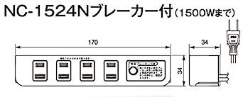 通常1-5営業日で発送:ノア 家具用コンセント(什器用) 4ヶ口コンセント 茶 VFFコード1.9m 棚下直付タイプ 1500Wまで ブレーカー付 NC1524Nブレーカー付茶
