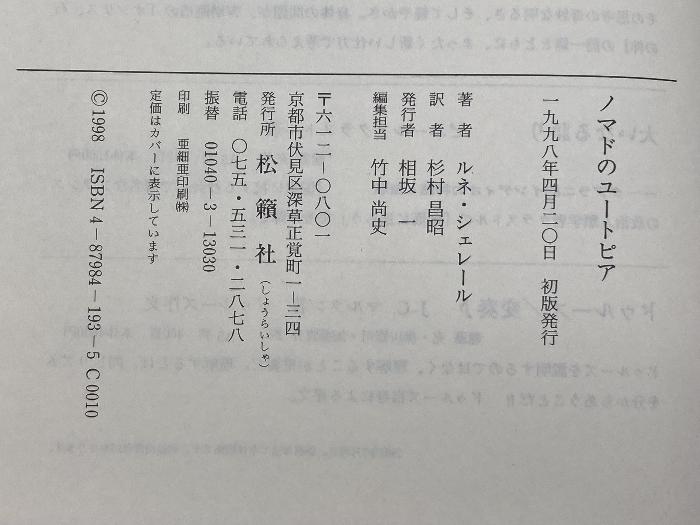 商品名:ノマドのユートピア: 2002年を待ちながら 松籟社 ルネ シェレール