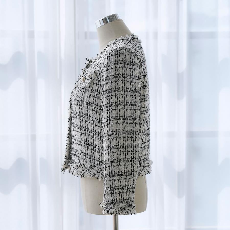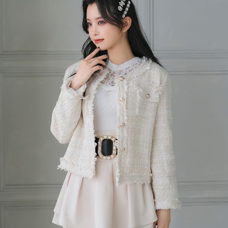 ”クラシカルな雰囲気に程よいきちんとシルエットが大人のこなれ感を演出する一枚”上品な見えのツイードジャケット。ノーカラーのデザインは顔周りをすっきりとみせてくれます。さり気ないフリンジ使いがデザインのアクセントに◎フォーマルドレスや式典などのセレモニーシーンの羽織りとしてもお使い頂けます。デイリーからオケージョンシーンまで幅広く着用できるツイードジャケットは、どんなスタイリングにも溶け込む優秀アイテムです。.:。+゜.:?????*#ギャル ギャルファッション セクシー ママコーデ 入園式卒園式 入学式卒業式 七五三 オケージョン 可愛い フェミニン 大きいサイズ 双子コーデ ショート ミニ あざとい カジュアル Y2K シンプル ダンス 制服 高校生 中学生 通学 スクール JK 韓国ギャル ギャルコーデ《透け感》なし 《生地の厚さ》普通 《裏地》あり 《伸縮性》なし《生産国》中国