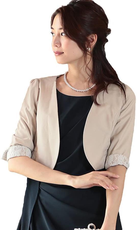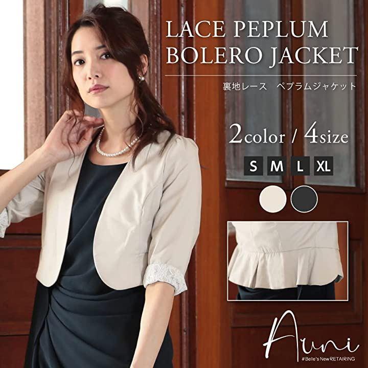・[アウニイ] AUNI 裏地 レース ノーカラー パーティー ボレロ レディース