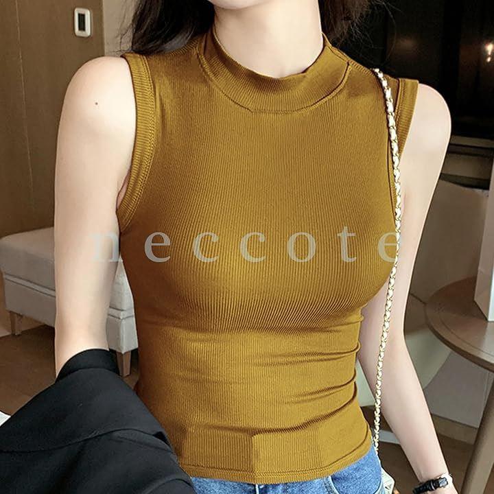 首元をきれいに見せてくれるハイネックのノースリーブ。