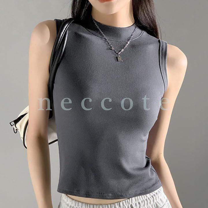 首元をきれいに見せてくれるハイネックのノースリーブ。