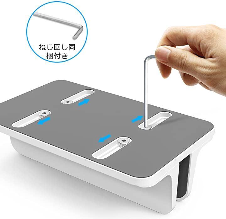 ノートパソコンだけでなく、iPadやタブレットの設置も可能で、様々な幅の機器に対応します。