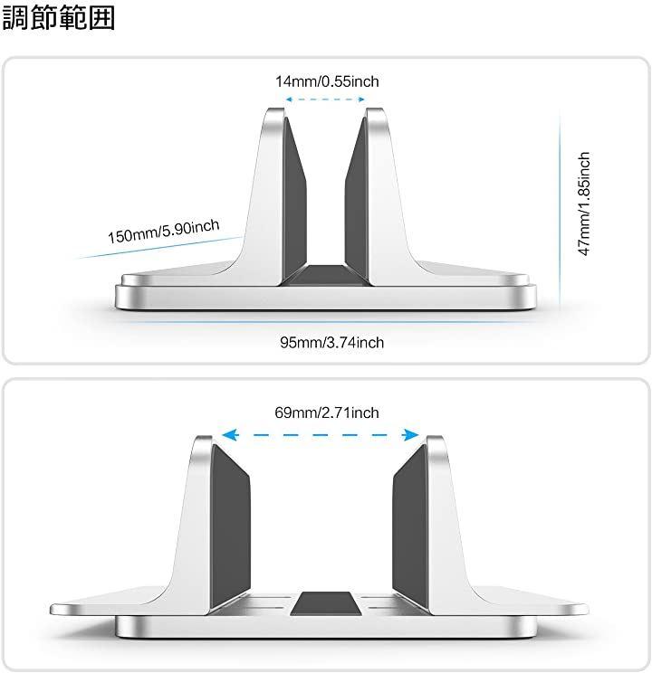 この製品はノートパソコンを美しく立てて、収納用のアルミスタンドです。