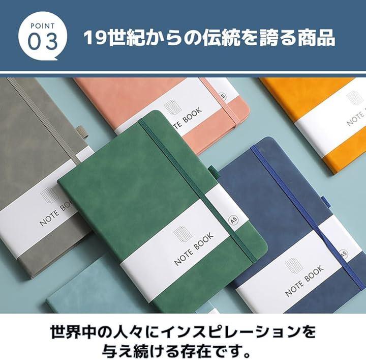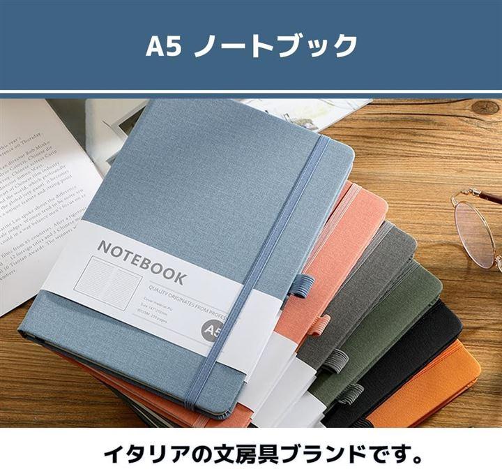 「商品詳細」サイズ:横13cmx縦21cm(梱包サイズ:21cmx13.2cmx1.4cm、重量:250g、ノートサイズ:A5、罫線の種類:横罫線、カラー:ブルー、オレンジ、ピンク、ブラック、グレー、グリーン