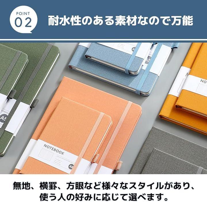「耐水性のある素材」ノートブックの表紙は、耐水性のある素材で作られており、シンプルな黒色が一般的です。