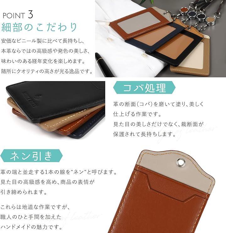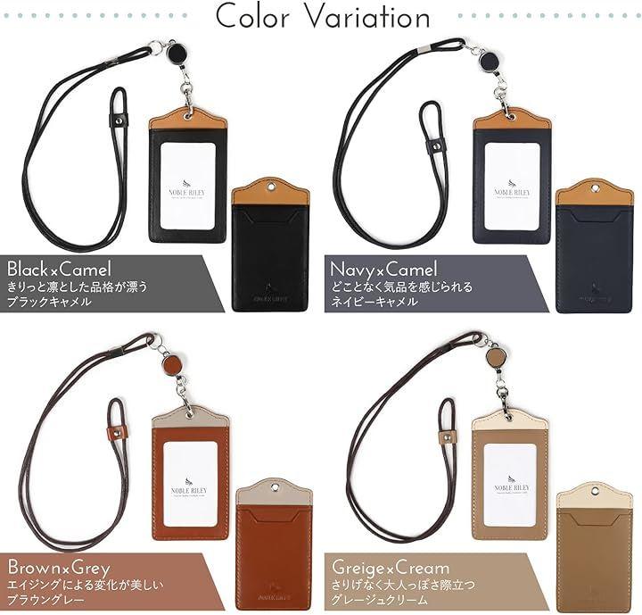 「Spec」 *素材 本体:本革(牛革) 透明フィルム:プラスチック、ストラップ紐:コットン *仕様 クリアポケットx1、カードポケットx2 *サイズ 本体:縦 約 12.6cmx横 約 7.3cmx厚さ 約 0.5cm ネックストラップ:全長 約 53cm(金具含む) *重さ:約 48g「Color Variation」 BlackxCamel:きりっと凛とした品格が漂うブラックキャメル。