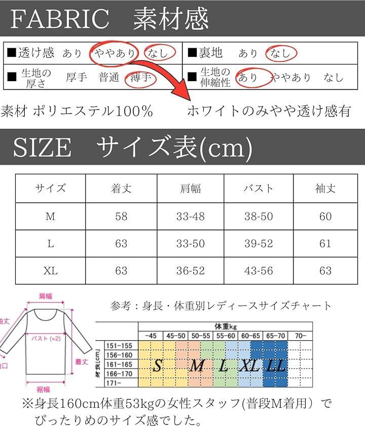 「素材」ポリエステル100% 「カラー」ホワイト、グレー、ダークブラウン、ブラック「サイズ(cm)」M 着丈58/肩幅33-48/バスト38-50/袖丈60 L 着丈63/肩幅33-50/バスト39-52/袖丈61 XL 着丈63/肩幅36-52/バスト43-56/袖丈63