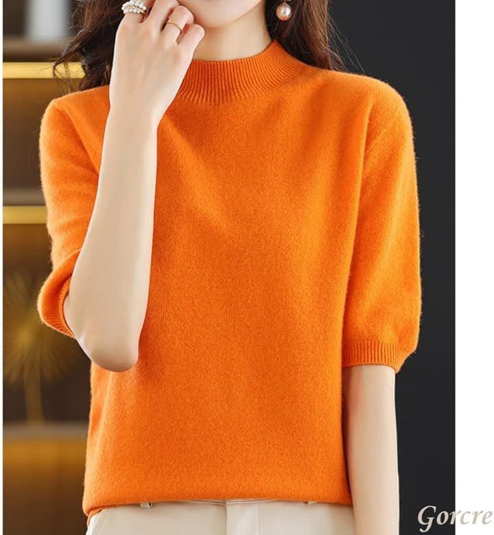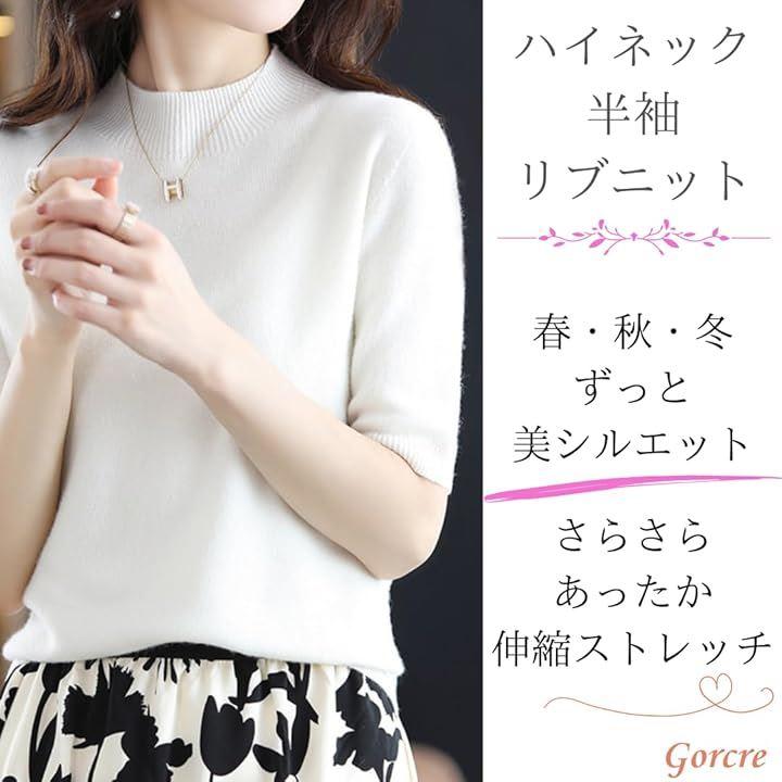 「ずっと続く美シルエット」かゆくない・伸縮・あったかで、春・秋・冬はずっと上品美シルエットでおまかせ。ハイネックでリブニット半袖トップスのお届けです。