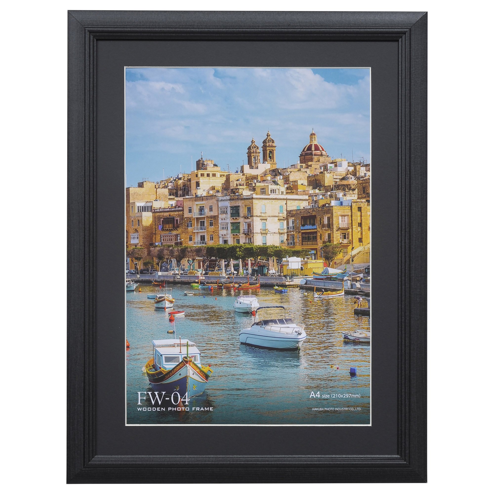 場所を選ばずに使用できる木製額縁 お手頃価格の木製額縁です。 フレームの外側はゆるやかな曲線を描き、やわらかで温かみのある印象。 内側には奥行きを感じさせるように大小の凹凸のラインをほどこし、写真をさらに印象的なものにします。 天然の素材である木の持つやさしいイメージは、場所を選ばずにご使用いただけます。 木製のフレームには環境に配慮した木目調シートを表面全面に使用しております。 また、Vカット※の中抜き加工より、額縁にさらに奥行き感を与え、作品をより引き立たせます。 ※Vカットとは、中抜きの断面を斜めに断裁する加工方法です。 ご注意(免責)>必ずお読みください 写真や作品をフレームにセットする際にはお取扱に充分ご注意ください。枠やガラスの尖った部分で指等にケガをする場合があります。 【製品仕様】 ■フレーム材質 : 木製 ■額縁外寸法 : W279×H366×D12mm ■マット外寸法 : W245×H332×D1mm ■マット中抜寸法 : W190×H277mm ■マット仕様 : Vカットマット紙 ■前面板 : ガラス板 ■重量 : 747g ■スタンド : なし ■吊りヒモ : あり ゆるやかな曲線で温かみ溢れるお手頃価格の木製フォトフレーム 奥行き感を与え作品をより引き立てるVカット(断面斜め裁断加工)マット 木製の枠には環境に配慮した木目調シートを使用 額縁外寸法 : W279×H366×D12mm マット外寸法 : W245×H332mm、マット中抜き寸法 : W190×H277mm 重量 : 747g フレーム材質:木製、前面板:ガラス板 吊りヒモ付属