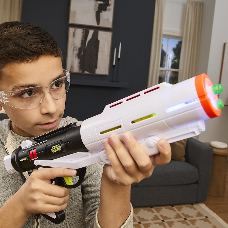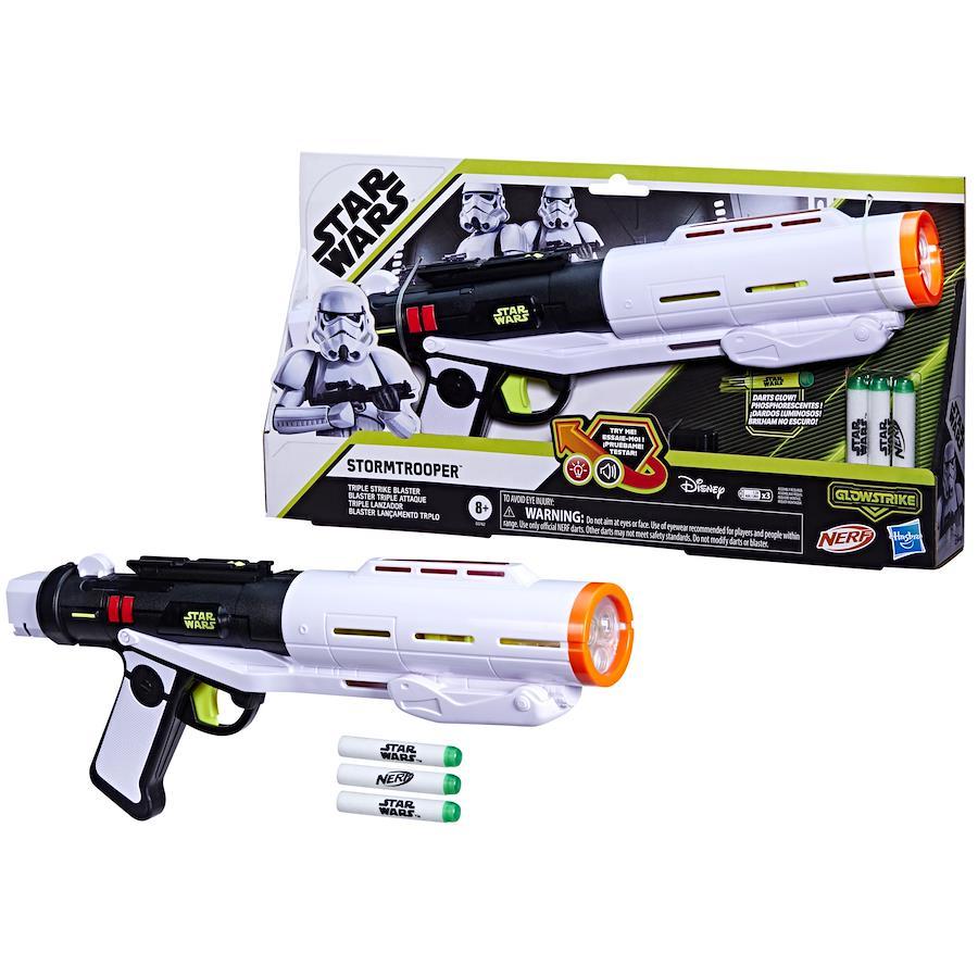 スター・ウォーズ ナーフ グローストライク ストームトルーパー トリプルストライク・ブラスターで銀河の冒険に飛び出そう!ナーフ グローストライクテクノロジーにより、ダーツを充電して暗闇でライトアップさせることができます。3本のダーツをブラスターにセットして、プライミングスライドを前後に動かし、トリガーを引くと、ライト&サウンドとともにダーツが発射されます。セットには、高品質のナーフ グローストライクダーツ3本が付属しています。インドアでもアウトドアでもアクティブに遊ぶのに最適なスポーツシューティングトイは、ナーフやスター・ウォーズのファンの方へのギフトにもおすすめです!安全のためゴーグルを使用することを推奨します(別売)。単四アルカリ電池3本使用(別売)。 Star Wars products are produced by Hasbro under license from Lucasfilm Ltd. HASBRO and all related trademarks and logos are trademarks of Hasbro, Inc. セット内容:ブラスター、グローストライクダーツ3本 対象年齢8才以上 注意:小さな部品があり、飲み込むと危険です。3才未満のお子様には絶対に与えないでください。 警告:まれに商品の光の点滅により、てんかん発作が引き起こされる場合があります。てんかんの症状をお持ちの方は、商品を使用する前に医師へご相談ください。 警告:目や顔に向けて発射しないでください。安全のために、プレイヤーや周囲の人はゴーグルを使用することを推奨します。ナーフ公式ダーツのみをお使いください。他のダーツは安全基準を満たさない恐れがあります。ダーツやブラスターを改造しないでください。 単四アルカリ電池3本使用(別売) (c)& ? Lucasfilm Ltd. (c)2025 Hasbro. All Rights Reserved.