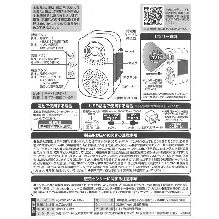 録音音声、チャイム、アラーム、3通りの再生ができる、人感センサーです。