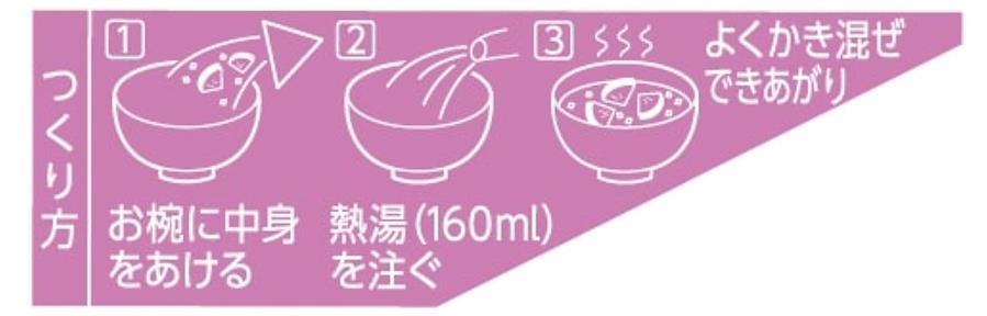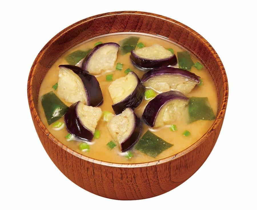 「驚きの具材! 」がコンセプトの「ごちそう具材シリーズ」、なすのおみそ汁です。三角パックという即席みそ汁でこれまでにない形状。従来のブロックタイプの即席みそ汁と比べ、具材に味噌が染み込まなく、美味しく召し上がれます。ジューシーな旨みを持つ揚げなすを使用。ごろっと満足なボリュームがあり、揚げなすのコクがおみそ汁に広がります。