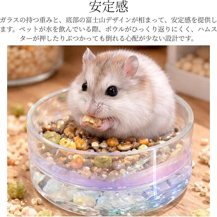 ペットが水を飲んでいる際、ボウルがひっくり返りにくく、ハムスターが押したりぶつかっても倒れる心配が少ない設計です。