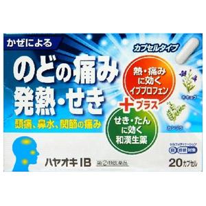■特徴「ハヤオキIB」は、解熱鎮痛成分イブプロフェンが「つらい熱・のどの痛み」をともなうかぜにすぐれた効き目を発揮します。「ハヤオキIB」は、イブプロフェンをはじめ、和漢生薬のカンゾウ、キキョウを含む8種の成分がバランスよくはたらいて、せきやたん、鼻水、鼻づまりなど、かぜのいろいろな症状を緩和するかぜ薬です。