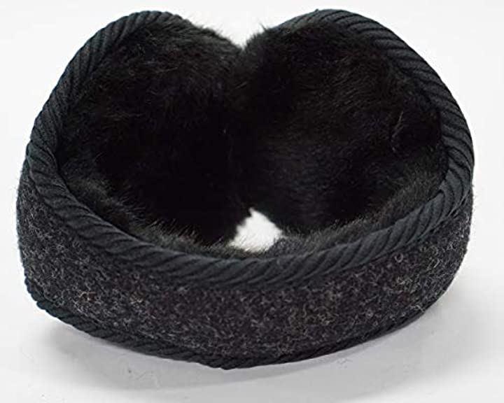 (製品寸法)全長43cm つる幅5cm 耳あて部分直径11cm (素材)本体毛100%ハリスツィード(スコットランド製)使用 ボア部分:ポリエステル100%