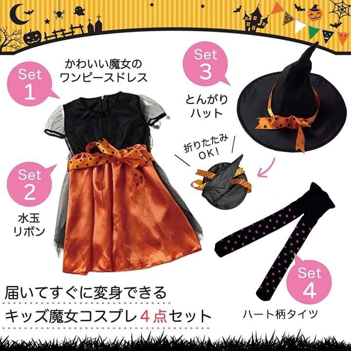 ハロウィン コスプレ 子供 キッズ 魔女 オレンジ