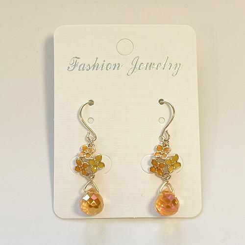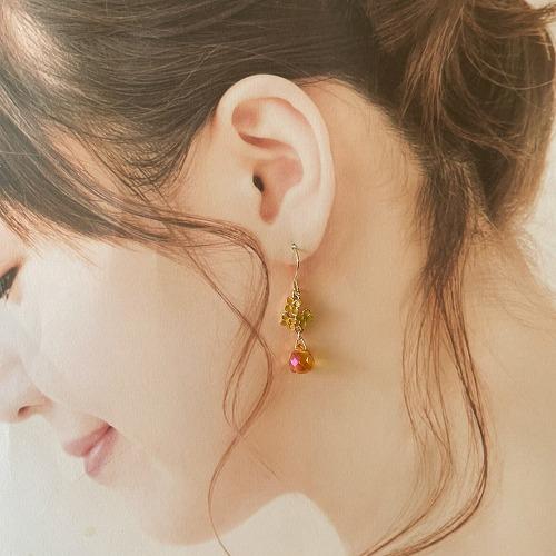 オリジナルハンドメイドピアスです。金木犀の小さな花がまとまっているところに多面カットのガラスドロップを合わせて秋らしいテイストです。