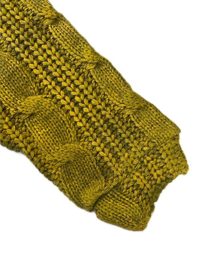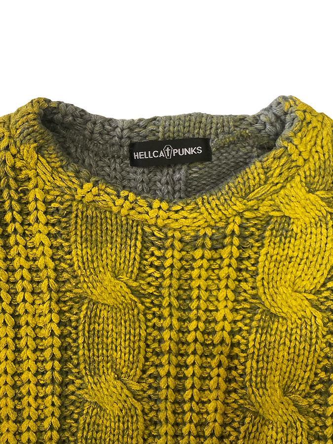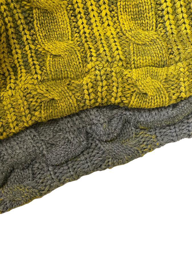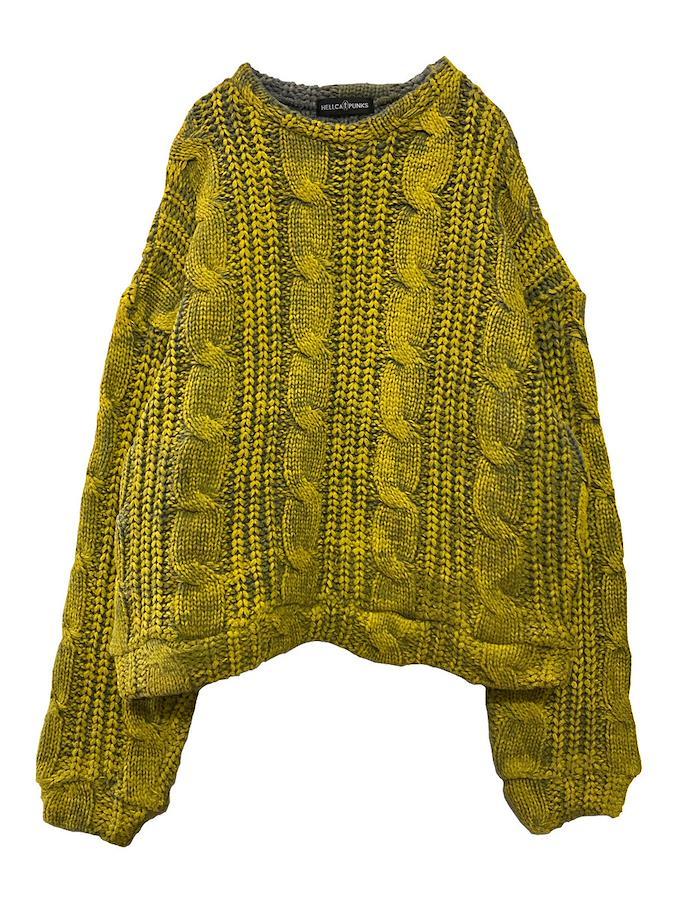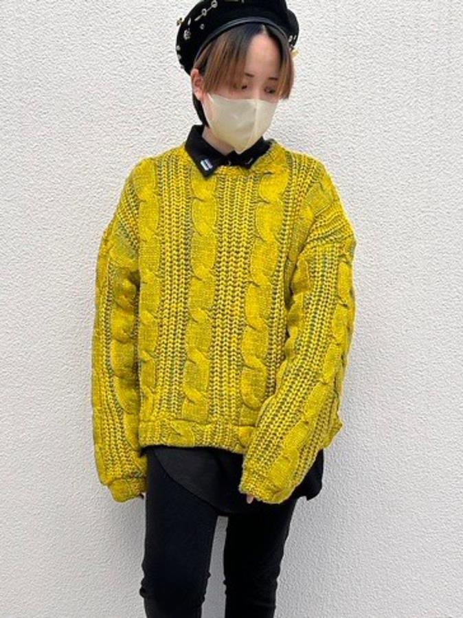 ざっくり編み込まれた立体感のあるローゲージニット。ペンキを塗ったような個性的なデザインでコーデの主役になるアイテム☆グリーンにはブラックの毛糸、イエローにはグレーの毛糸を使用しています。