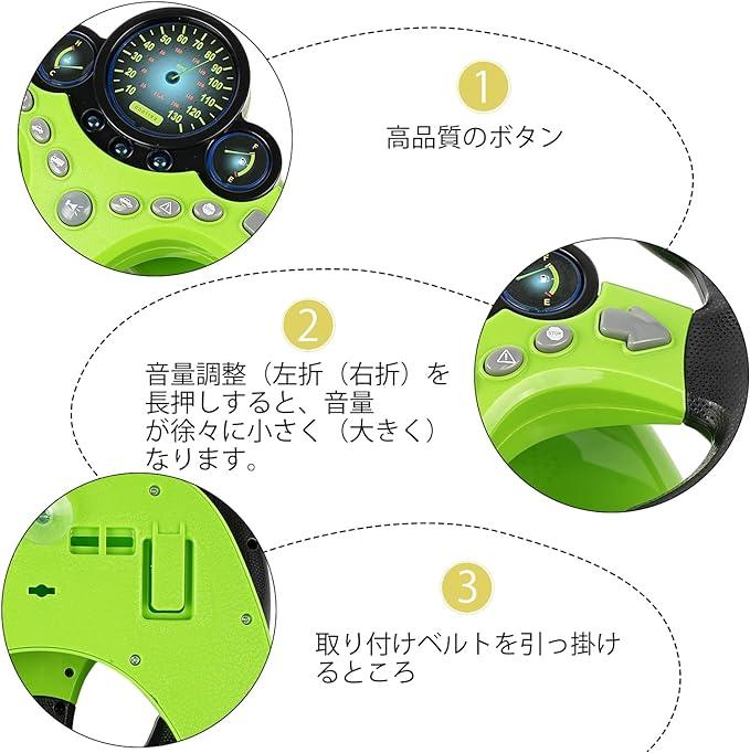 ■商品説明【音量調整・子供の車のおもちゃ】:2023年進化版左折(右折)を長押しすると、音量が徐々に小さく(大きく)なります。●材質:ABSプラスチック●電池:単3電池3本使用(別売)●対象性別 :?男女共用●セット内容:本体×1 ハンドル土台(取り外し可能)×1 高強力両面粘着テープ×1 取り付けベルト×1 電池カバー×1 日本語説明書×1?※長時間遊ばない時は、必ず電池を外してください。ぶつけたり、振り回すなど乱暴な遊びをしないでください。 【ドライブごっこ遊び】:エンジンをかけると、「Let's go」が鳴りハンドルが左右に回すとそれぞれのウィンカーランプも連動して点滅します。遊びの気分を盛り上げてくれます。エンジンをかけたり、クラクションを鳴らしたり、ハンドルを回して運転のマネをしましょう♪ 【サイレン音と光るランプ】:サウンドやライトがついた、ドライブごっこができるハンドルのおもちゃです。左の「3種類の緊急車両」ボタンを押すと、それぞれ救急車、パトカー、消防車、のサイレン音が流れて、サイレンランプが点滅します。右の「信号機ボタン」を押すと、それぞれの音+ランプが光ります。[左右折ボタン]ウインカー音+相応ウインカーランプが点滅します。ドライブ体験が楽しいながら、交通ルールと運転マナーも学べるハンドルおもちゃです♪ 【いろんなシーンに対応】:土台の裏で3つ吸盤があり&高強力両面粘着テープ付けるので、冷蔵庫のドアで・ベビーカードで・ゆかで・副操縦士席でいろんな平滑なところを固定して遊べます。取り付けベルトがつきで、大人の運転中に後部座席で本格的なドライブ遊びべます。使用シーンによって固定方式をお選びいただけます。 【知育・子供へのプレゼントに最適】:シンプルながら楽しさを感じる子供の車のおもちゃは、子供が指の細かい運動能力と聴覚感覚を発達させるのに最適です。遊びの中で親子の運転知識を育み、お子さまが心身ともに健やかに成長できるようサポートします。孫へ、出産祝い、七五三、入園祝い、クリスマス、誕生日などにお勧めのおもちゃです。?もっと見る