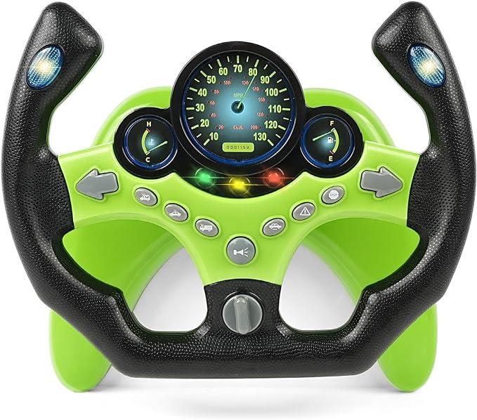 ■商品名ハンドルおもちゃ 子供の車のおもちゃ ドライブハンドルおもちゃ 音量調整 知育玩具 子供 プレゼント 誕生日 日本語説明書付き 英語発音6+(グリーン)