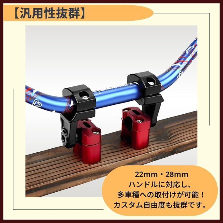 「汎用性抜群」22mm・28mmハンドルに対応し、多車種への取付けが可能。カスタム自由度も抜群です。