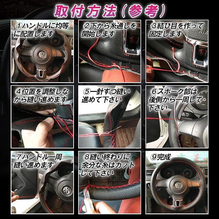 「セット内容」「ステアリング、ハンドルカバーx1」「編み込み用糸x2」「編み込み用針x2」説明書は付属いたしません。