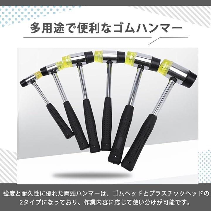 「多用途で便利なゴムハンマー」強度と耐久性に優れた両頭ハンマーは、ゴムヘッドとプラスチックヘッドの2タイプになっており、作業内容に応じて使い分けが可能です。