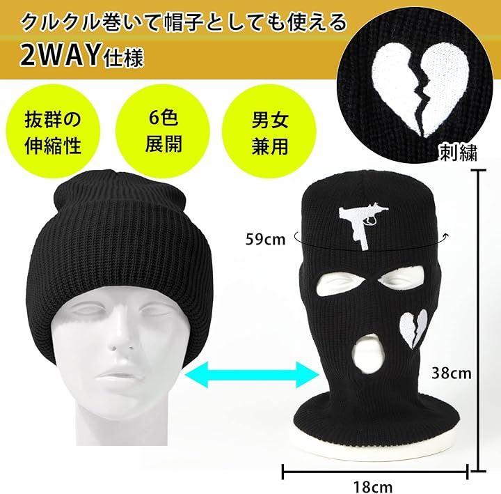 使い方次第で雰囲気が変わる2WAYデザイン 「従来の目出し帽より少し大きめのデザイン」 従来の目出し帽(サイズ:17cmx頭囲56cmx縦33cm)に比べて少し大きめのデザイン「せっかく購入したのに小さすぎて入らなかった…。