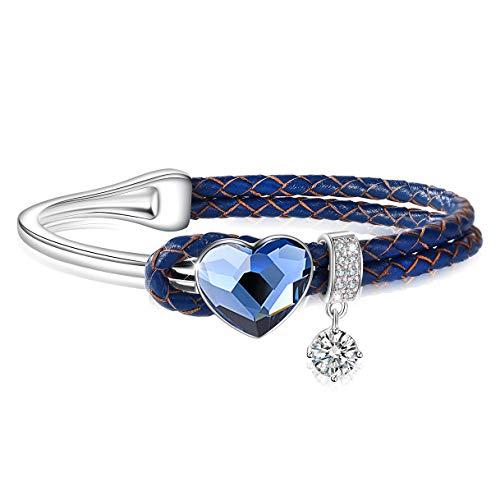 【製品仕様】基本サイズ:7.08''/18cm。優雅なブルー、キュートなピンク、大人っぽいブラウンを展開しており、お好みに合わせてお選びください【快適な着用感】上質なレザー素材とプラチナを採用しており、素材の組み合わせによって一味違う風合いが楽しめます。金属部分はプラチナを採用したため、金属アレルギーの方や敏感肌の方も気楽にご着用いただけます【スタイリッシュなデザイン】ハート型のクリスタルがメインになっており、おしゃれ感をさり気なくアップさせます。手首が動くたびにゆらゆら揺れる菱形のクリスタルが相まって、手元を大人っぽく爽やかに彩ります。年齢や季節問わず、普段使いはもちろん、デートなど特別な日にも適用します【高級感溢れるクリスタル】SWAROVSKI製100%純正クリスタルを採用したため、曇りに強くキズが付きにくい。耐久性を実現するとともに、上品な輝きで程よい高級感が漂います。Tシャツなどカジュアルコーデはもちろん、フォーマルな洋服にも合わせやすく、女性の魅力を一段と格上げします【プレゼントにぴったり】自分へのご褒美、お友達と色違いのお揃い、誕生日、記念日、クリスマス、母の日、ホワイトデーなど大切な方への贈り物に最適です。ギフトパッケージ付きで、喜ばれるプレゼントとしておすすめです