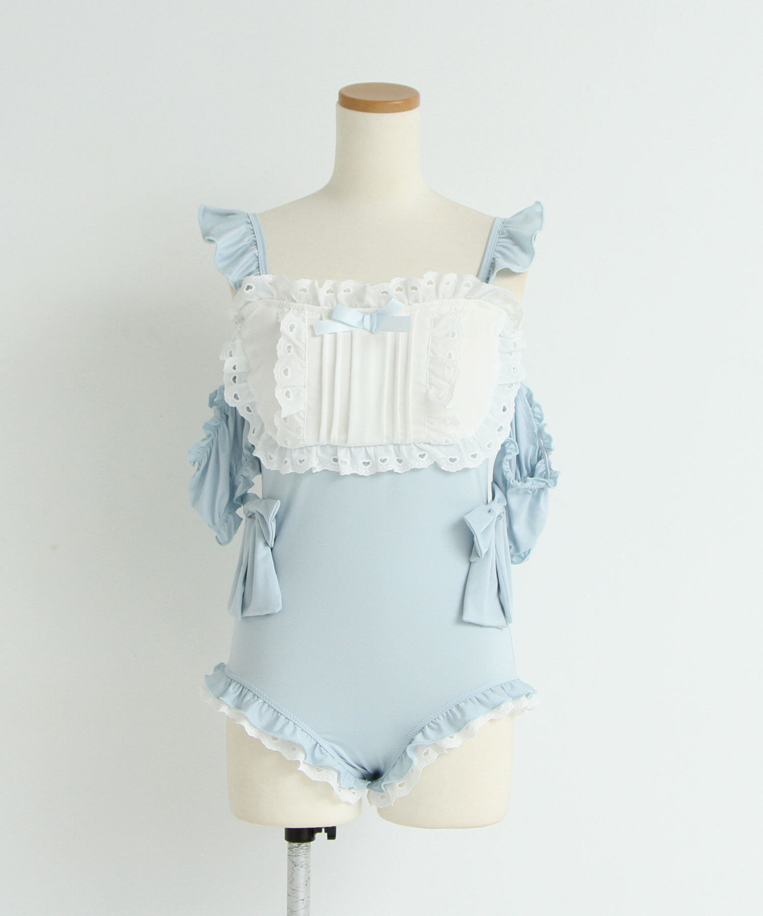 ハートフリルレースたっぷりのかわいいヨークデザインの水着です♪