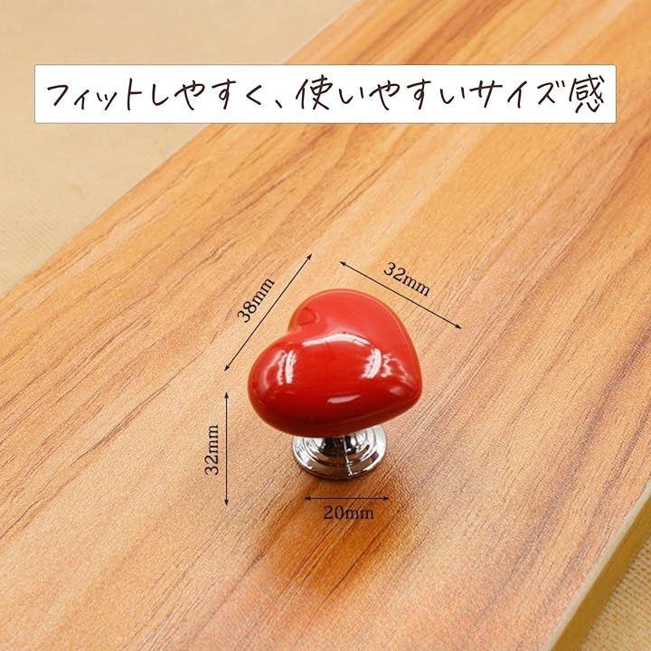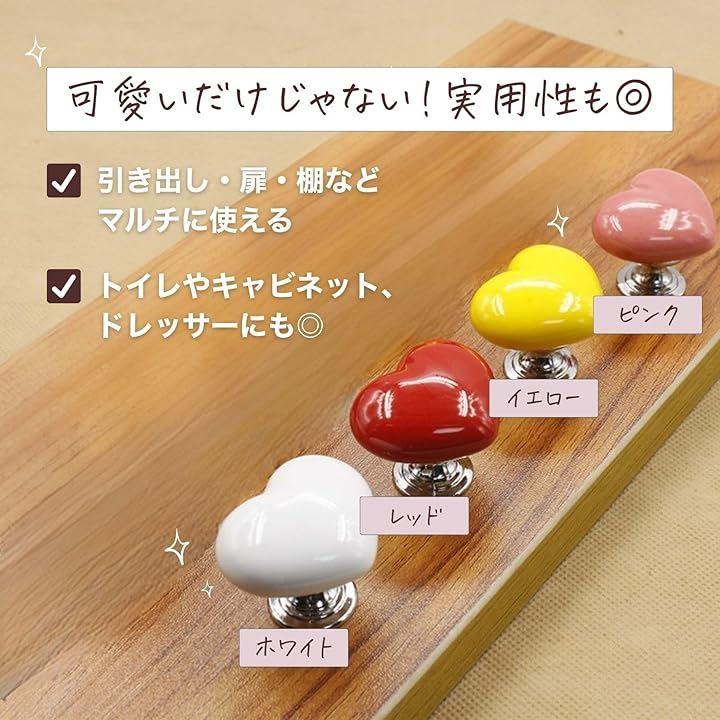「セット内容」: ハート型 引き出しノブx4「カラー」: レッド,ピンク,イエロー,ホワイト「サイズ」: 32x38x32mm「ネジ長さ」: 25mm「重さ」: 33g「素材」: 陶器