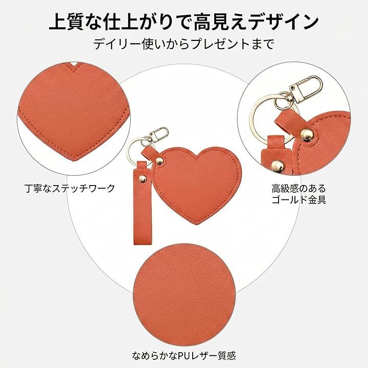 「ミラー付きチャーム」 ハート型を開くとガラスミラーが現れる、実用的なキーホルダーチャーム。