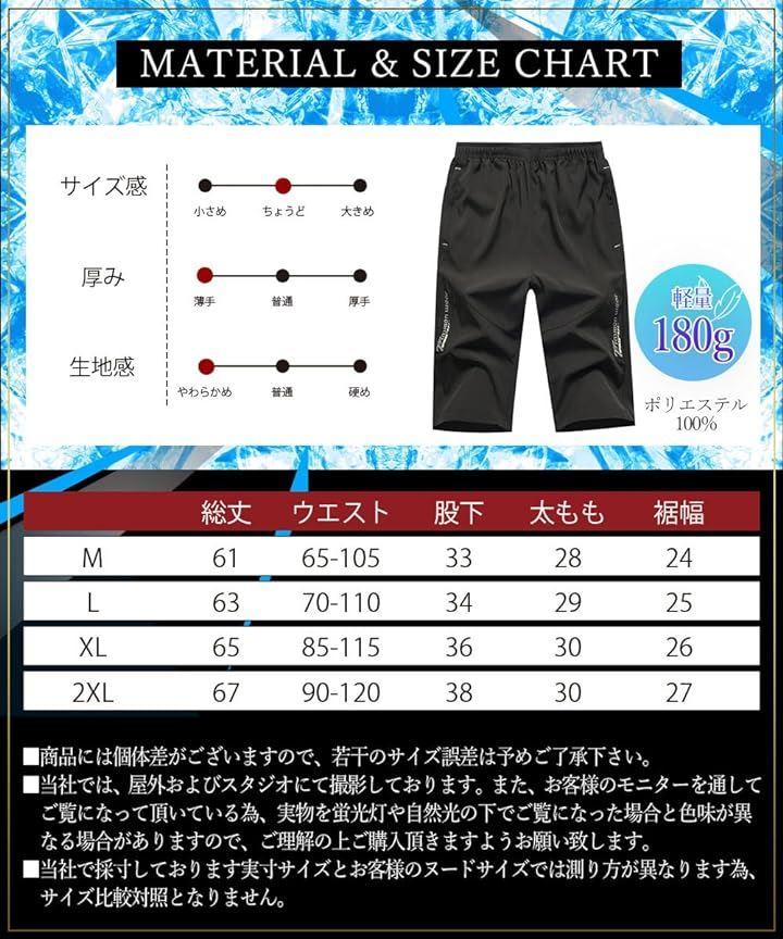 size:総丈/ウエスト/股下/太もも/裾幅「M」 61/65-105/33/28/24「L」63/70-110/34/29/25 「XL」65/85-115/36/30/26 「2XL」67/90-120/38/30/27 *サイズに若干の誤差が生じる場合がございますのでご了承ください。
